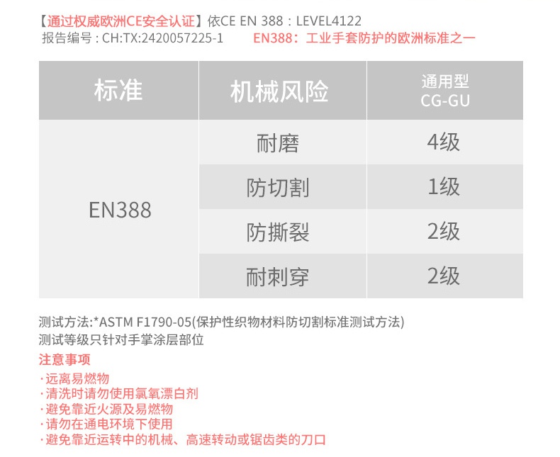 CG-CRE EN388三级防割 ANSI二级防割 M、L 6双/袋