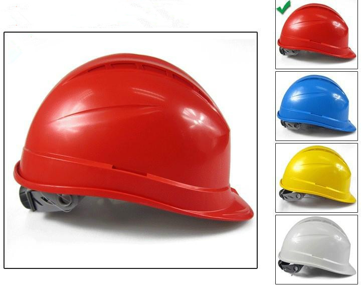 抗紫外线高密度聚丙烯安全帽。下压棘轮式可调节。排汗带。尺寸:53-63cm